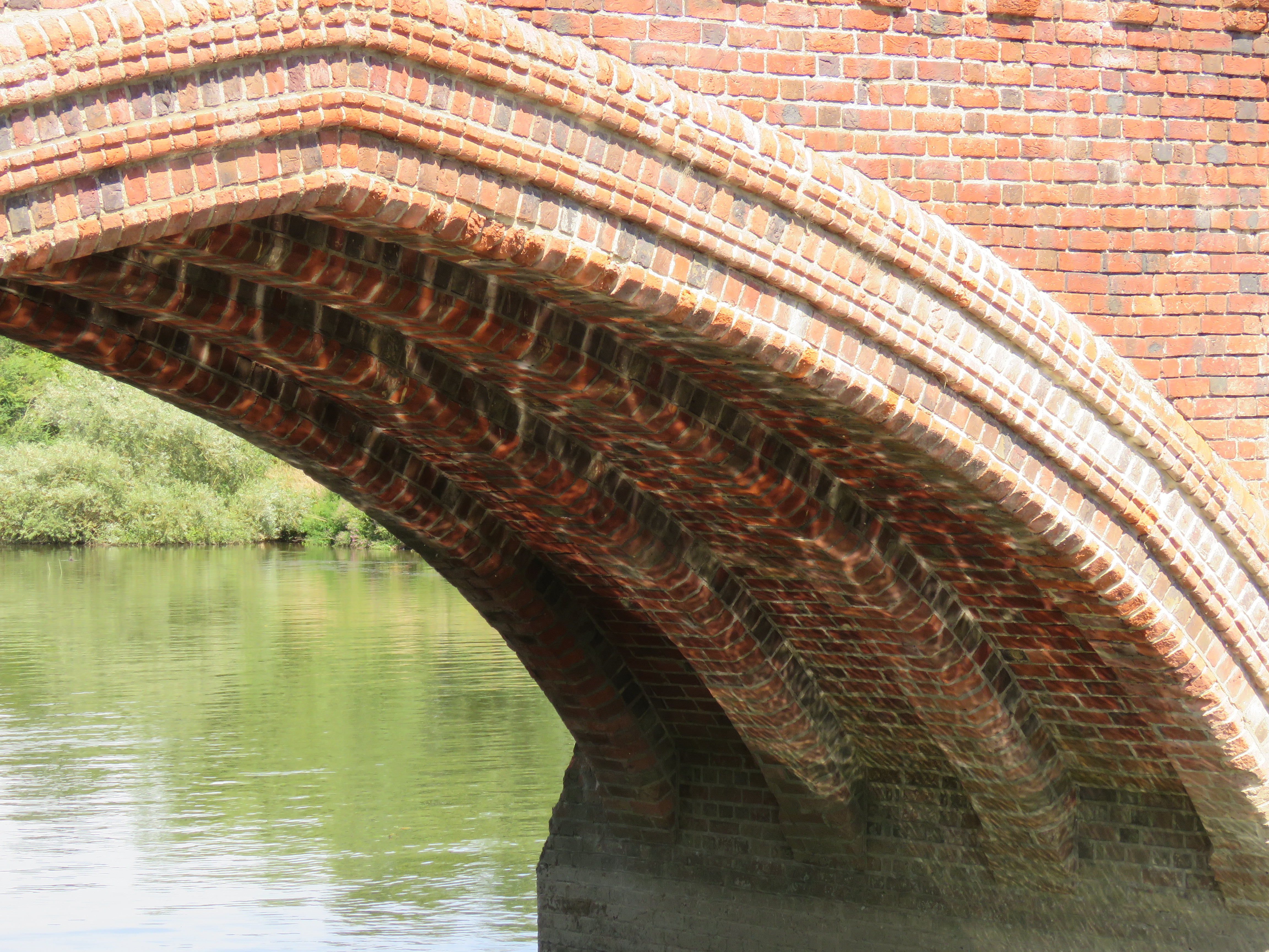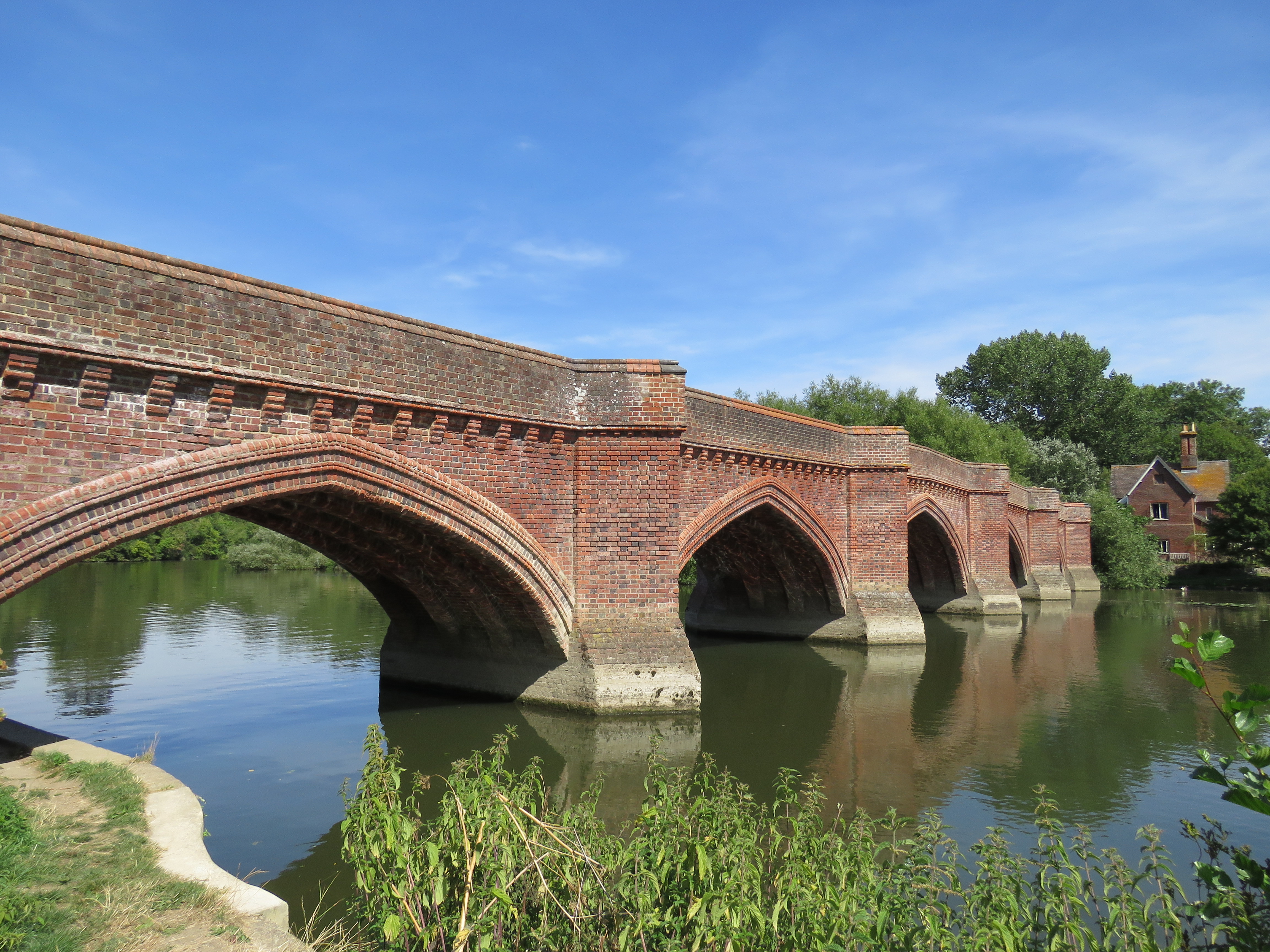 Staines is located at the confluence of the River Colne with the Thames. It is thought to have had a river crossing before Roman times. There was a Roman town here, called Ad Pontes (by the bridges). The current bridge opened in 1832, a little upstream of its predecessors. It was designed by John Rennie. Staines used to be the limit of the tidal Thames, which is presumably why the London Stone was located here. The locks downstream, notably Teddington, which we shall see in the next instalment, have changed that.