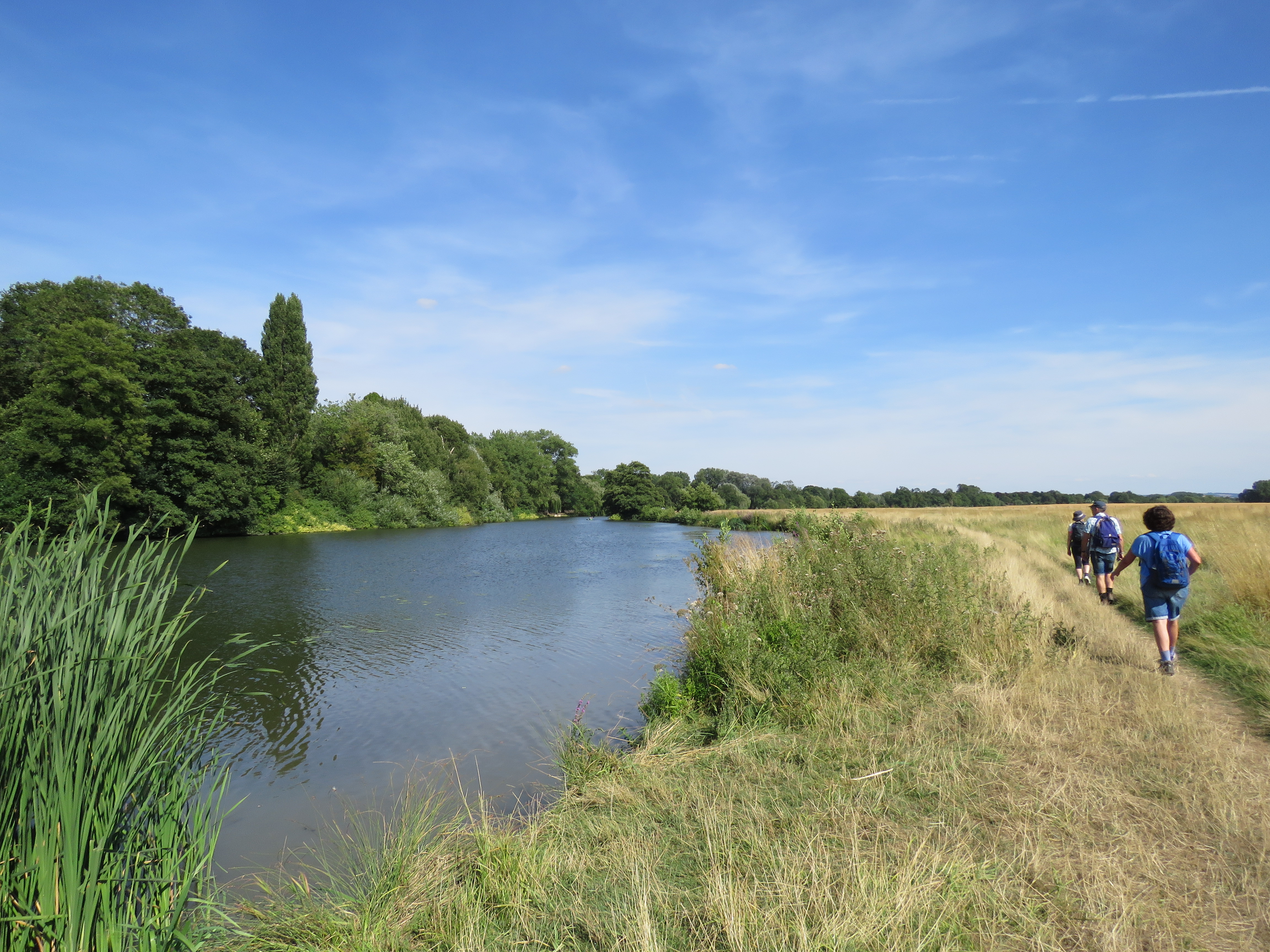 This was a longer stretch – 11 miles plus, downstream. We began from Windsor station, and were soon walking along the Home Park. Windsor Castle loomed in the background. The Queen’s residence, and an impressive sight. William the Conqueror built a castle on the knoll of chalk that rises here. Peter Ackroyd speculates that, being artificial, it may have prehistoric origins. William’s castle was rebuilt by King Edward III between 1360 and 1374. Hundreds of local men were “impressed” to do the building, against their will. Slave labour, basically.