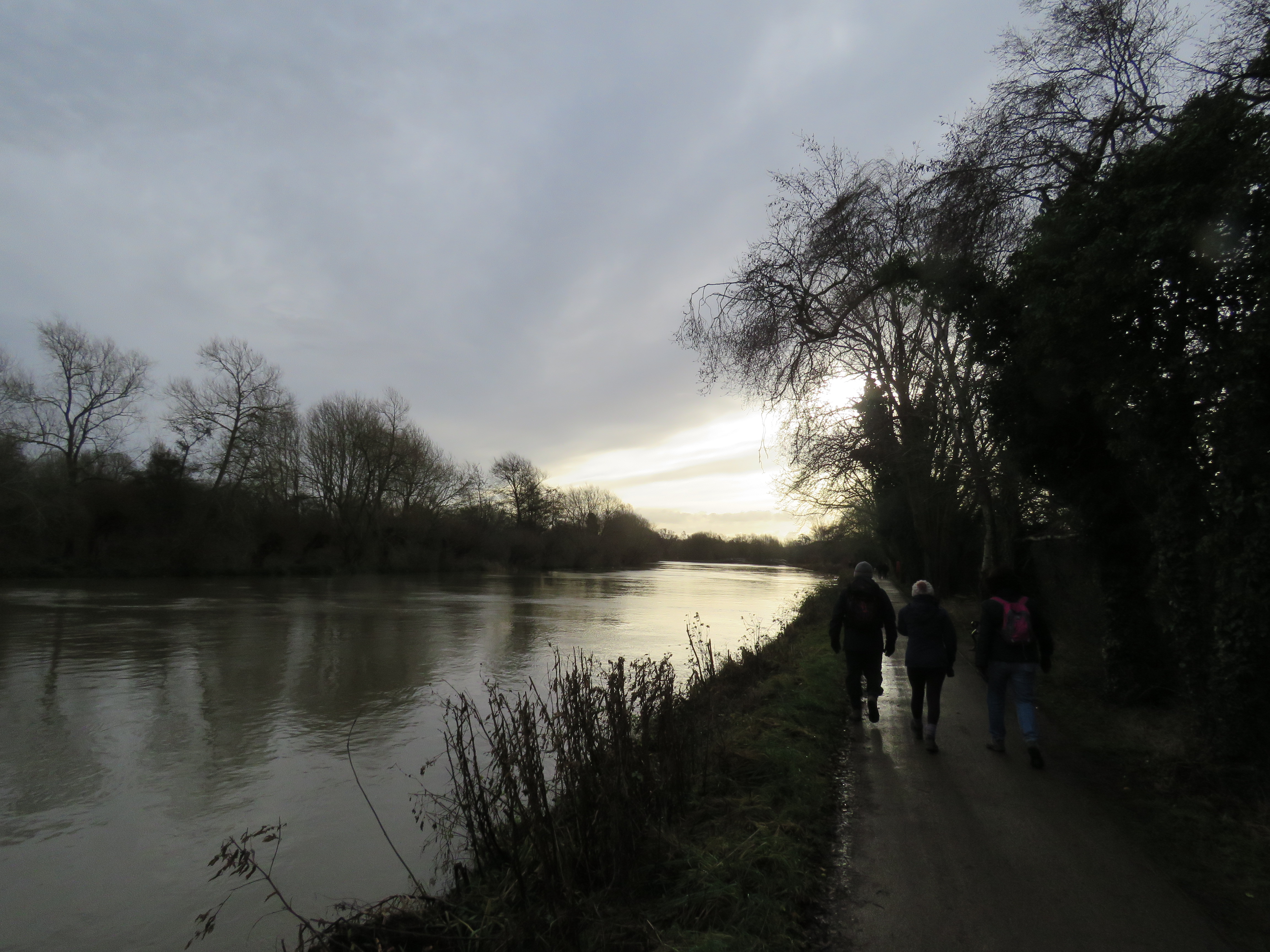 Quite often, before we finished our journey with three walks between Inglesham and Farmoor (see part two of this journey) we reminded each other, we haven’t done Chertsey to Hampton Court yet. I can’t say that I recall being excited by the prospect, but it had to be done. It was a good bit of exercise, and the Thames always has its compensations. It was another dull grey day when we completed this stretch. There had been a lot of rain, and there was a bit of flooding. Peter Ackroyd says that Chertsey has the last of the Thames’ “water meadows”. So it was a fairly unremarkable walk, but the destination was splendid, even if it didn’t stand out on the day.
